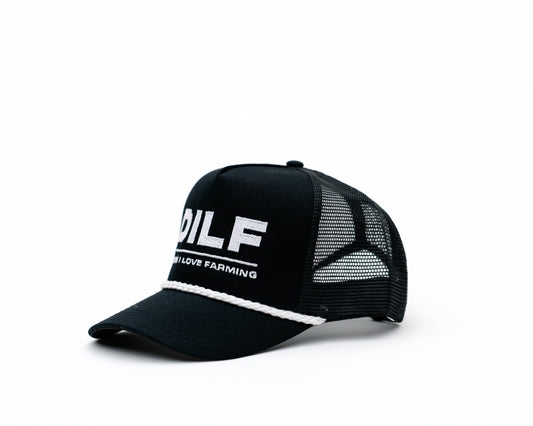 DILF Embroidered White Rope Trucker Hat